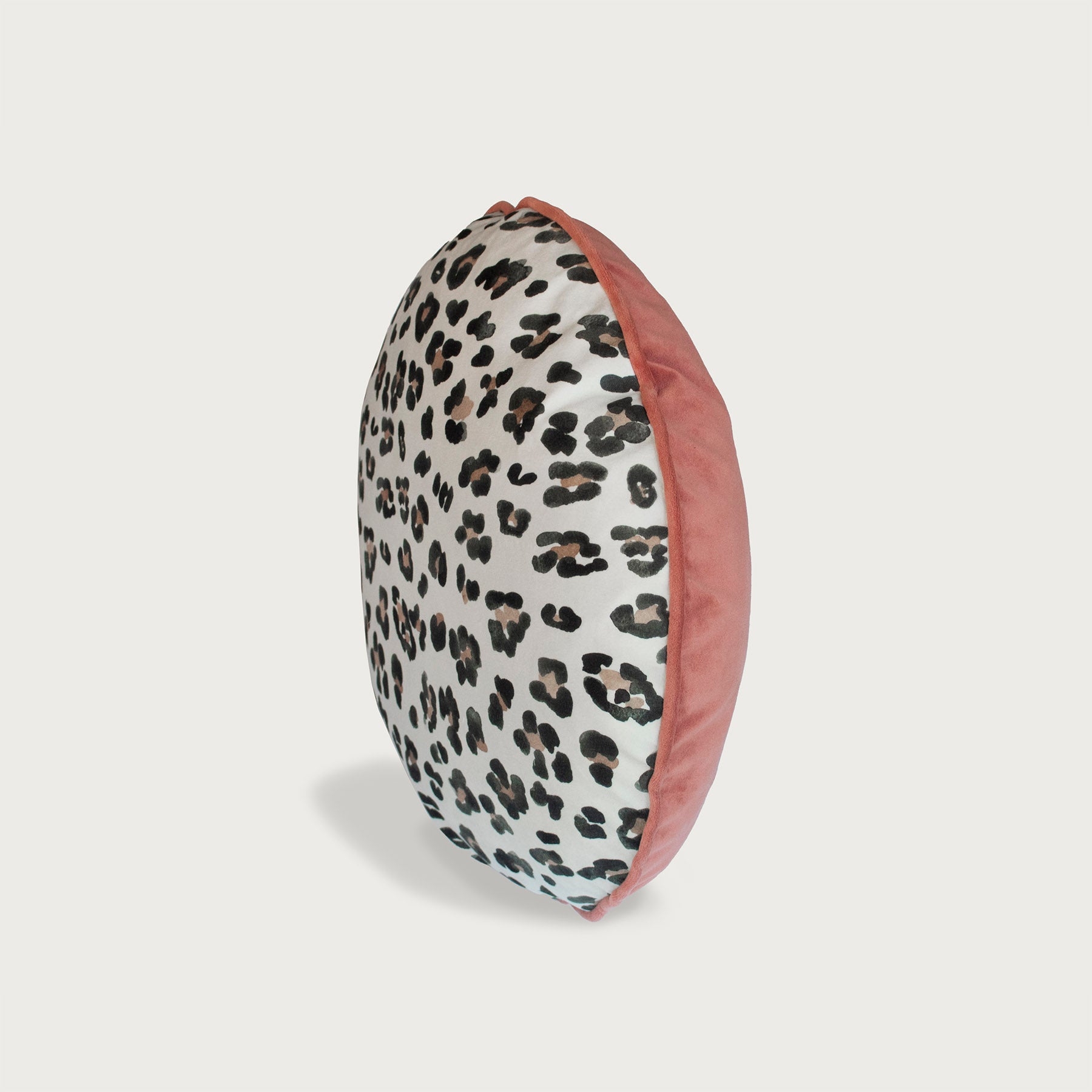 Round Macaron Ebony/Ivory Leopard + Blush Pink Velvet Cushion