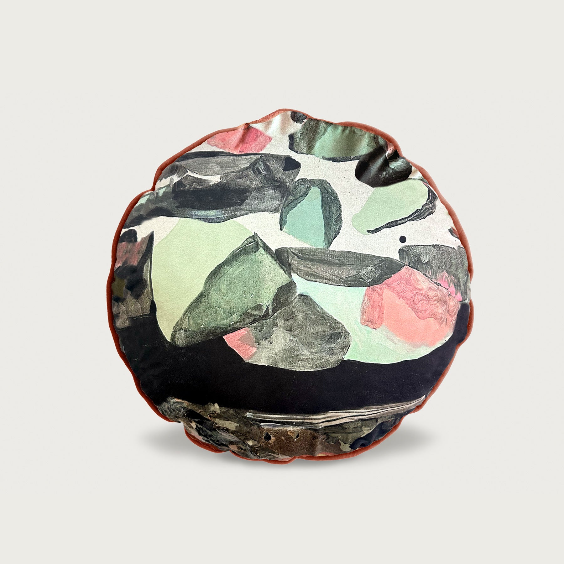 Luxurious printed velvet scatter cushion for interior design and decorating. Easily add flair and elegance to your bedroom or lounge by adding a beautiful selection of scatter cushions. Featuring a finger painted artwork by Anastasia Pather.